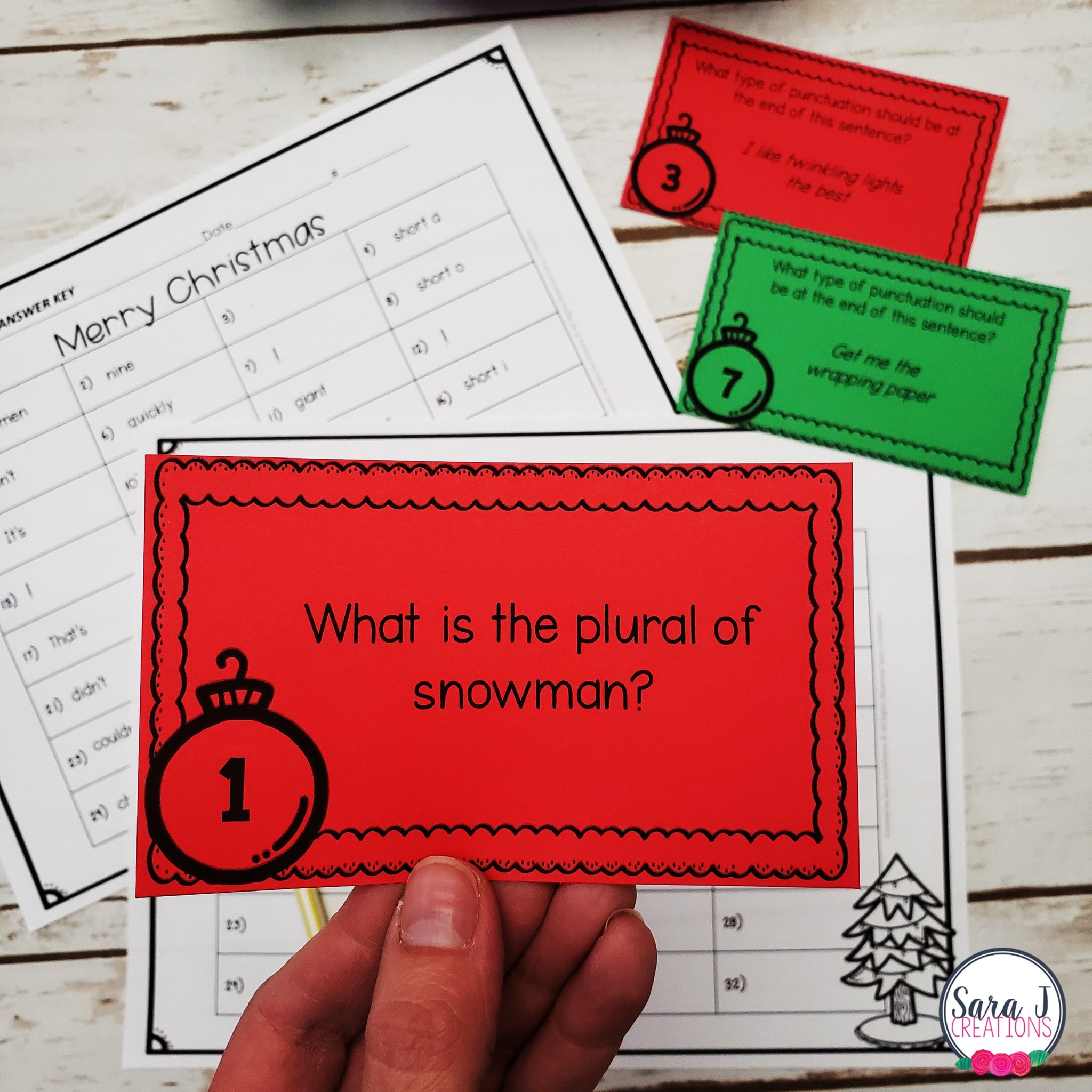 Christmas ELA Task Cards for 2nd Grade - Grammar, Punctuation, Parts of Speech